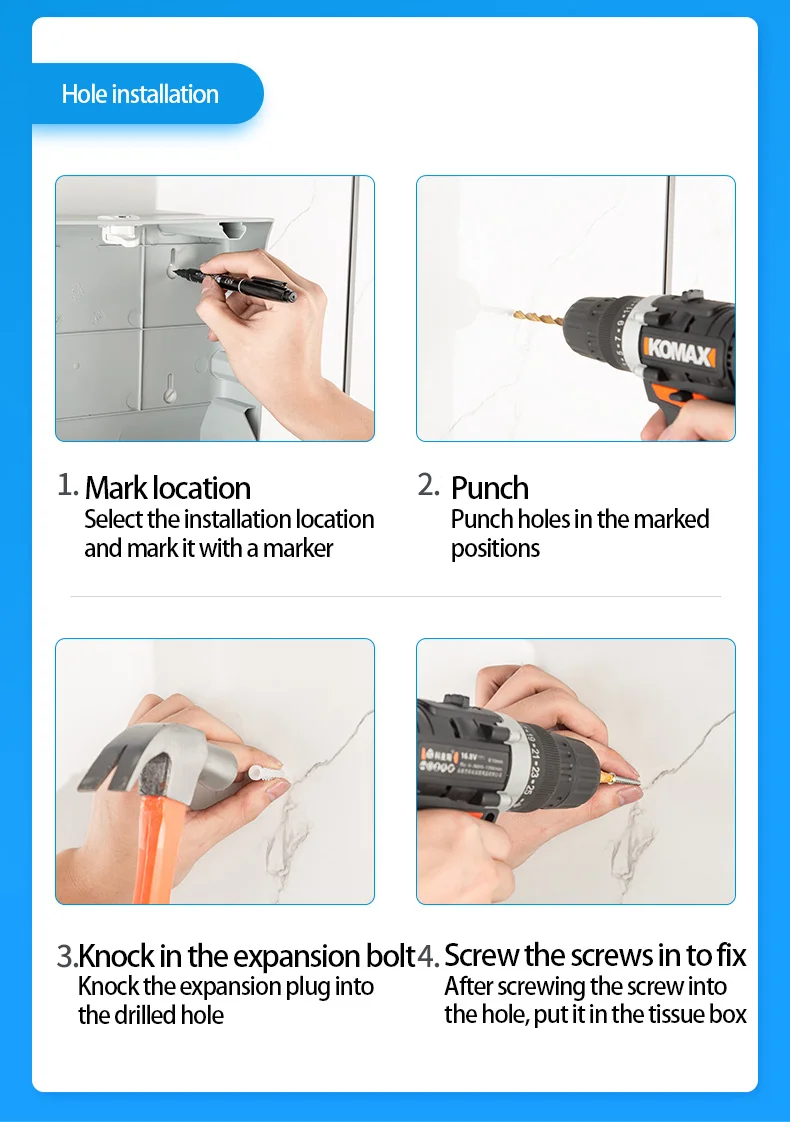 Easy To Install By 2 different Way – Drilling installation or double sided tape installation. Concealed srews are designed and only a few accessories needed to mount in the wall, easy to install and use,ensure durability.