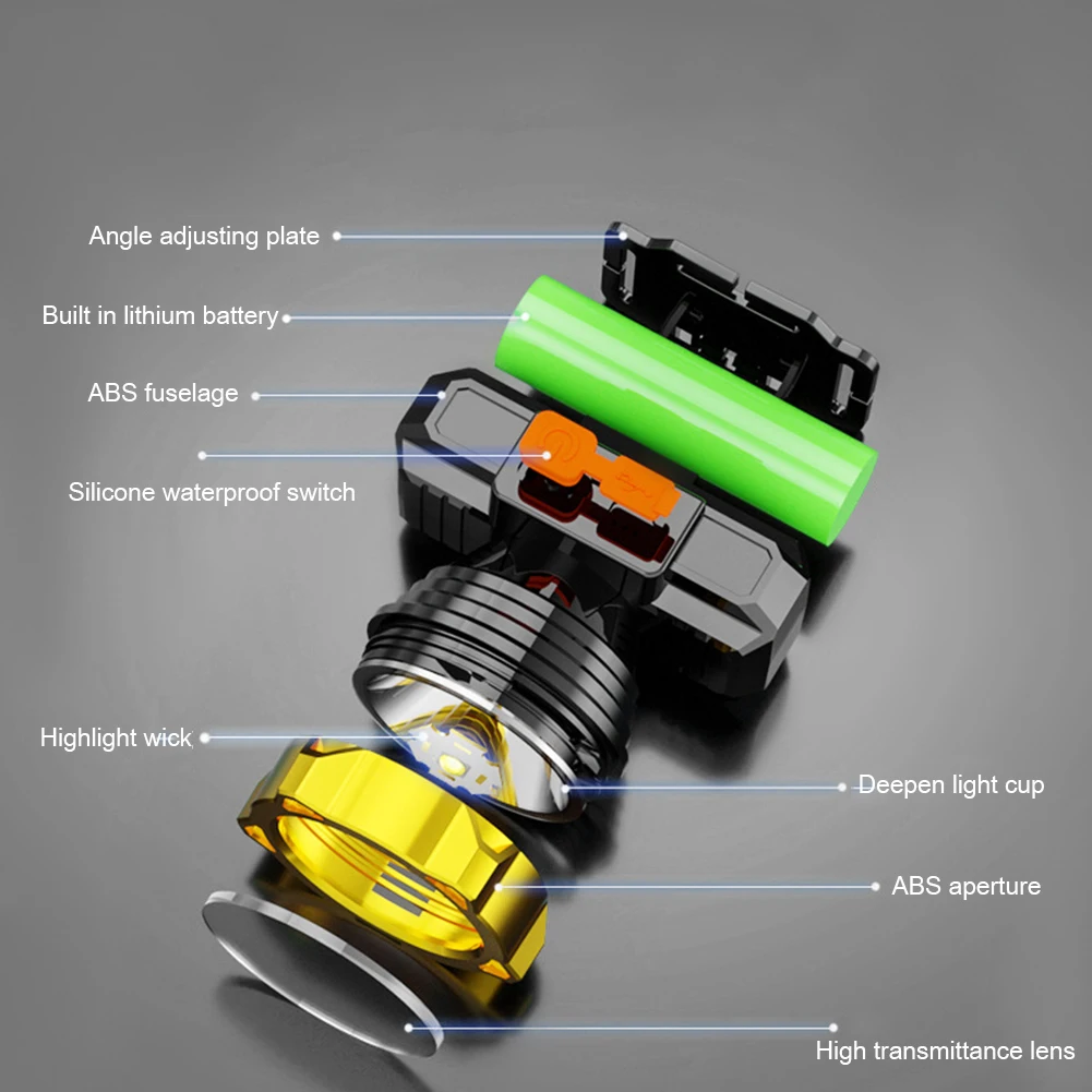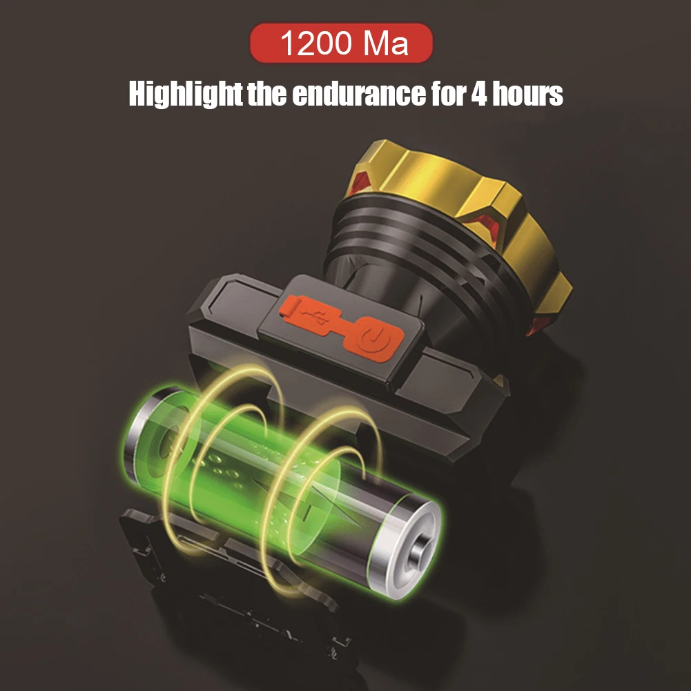 Portable Night Fishing LED Headlight 1200mAh Built-in Battery USB Rechargeable Waterproof Headlamp Head-Wear Flashlight for Outdoor Hiking Camping Specification: Note: Please allow 1-2cm measuring deviation due to manual measurement.